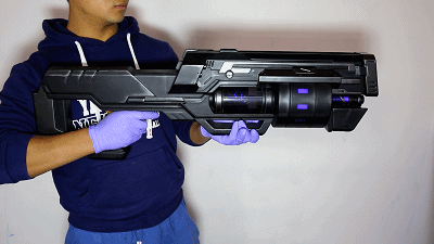 《机器之血》影片中用到的特效道具制作枪支多达20余支,在制作中运用到3维建模、3D打印、运动程序编写设计等技术,解决枪支外型的造型设计还原,质感仿真,并能在拍摄中完成光束射击的效果。多种造型的枪支在拍摄中以不同效果体现,更增加了角色造型的多元化。