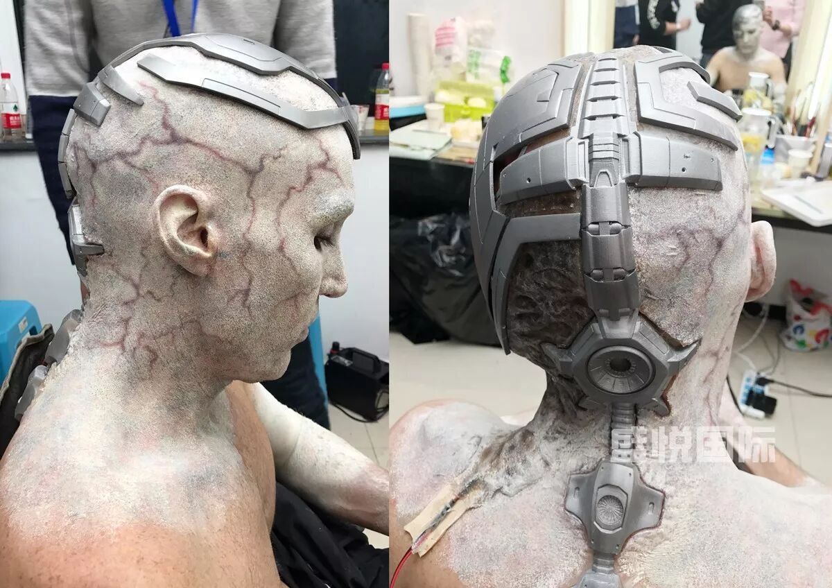 整个造型与故事串连,被烧伤的头部用机械壳保护裸露在外的“脑部”,眼部外装的光感展现,连通背脊的能量输送;造型从制作上容扩了特效化妆及特效道具。